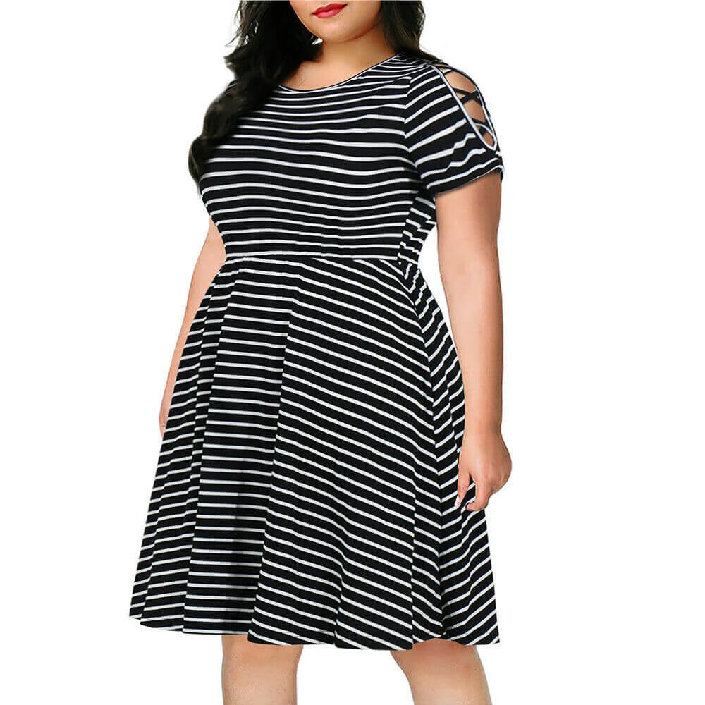 Summer 2022 Woman Oversize Striped Dress Shortsleeve Simple Style Off Shoulder Design