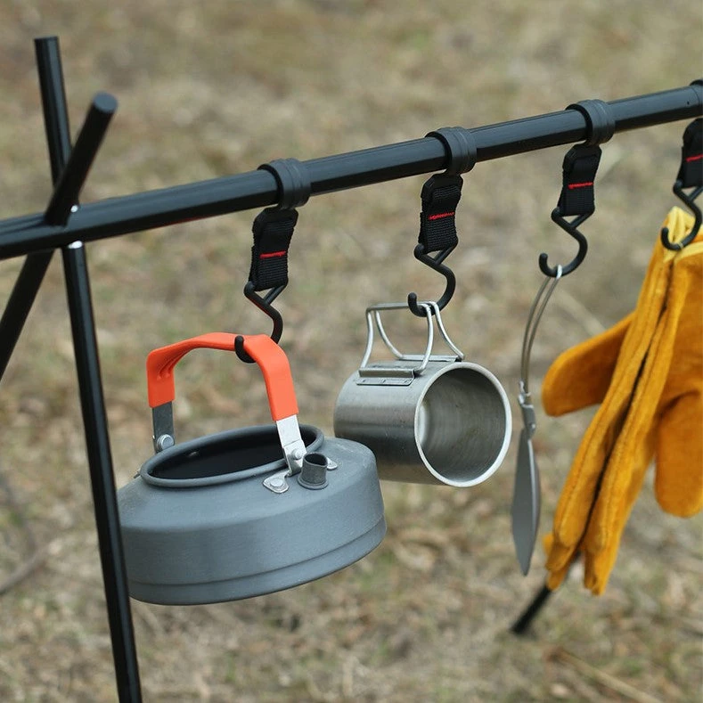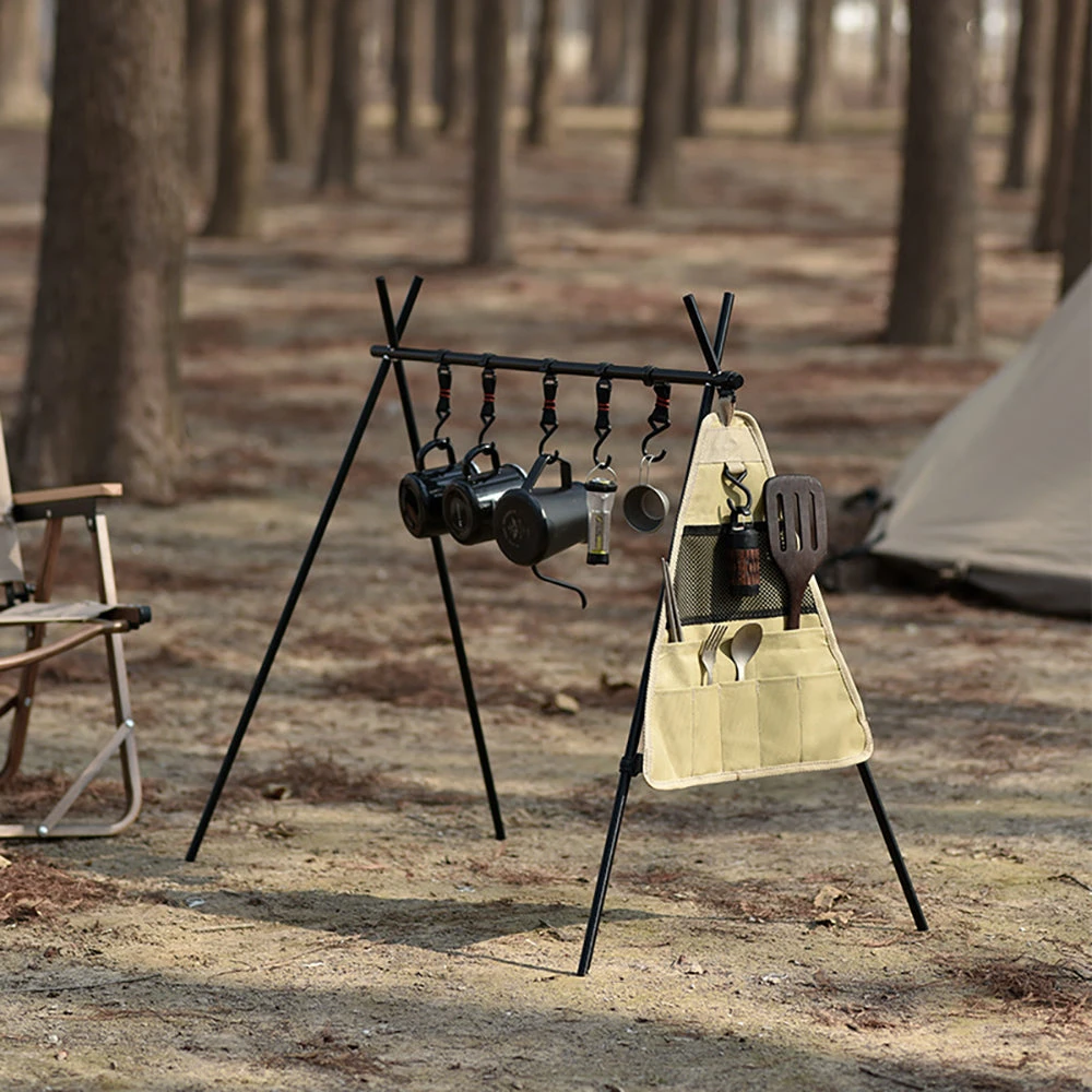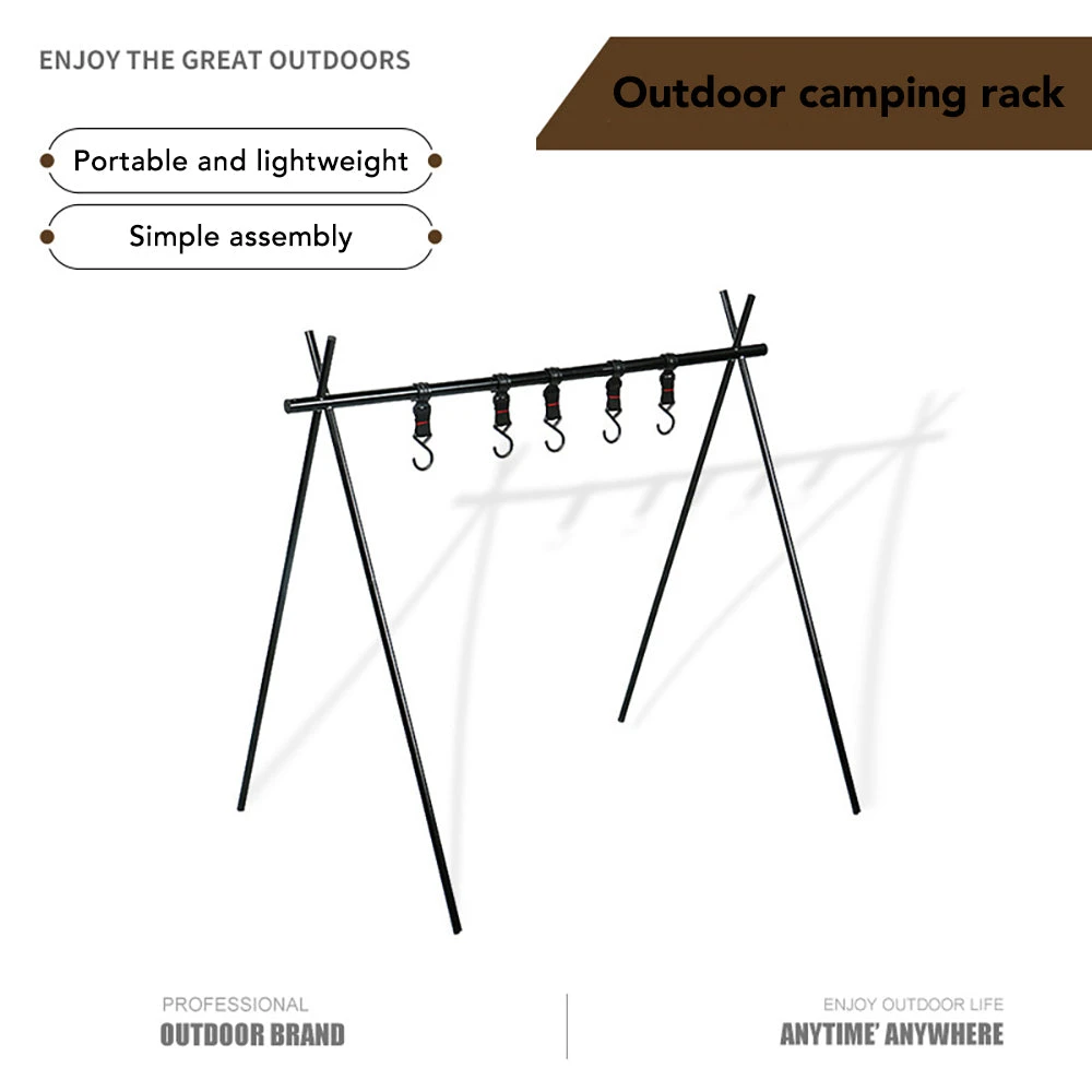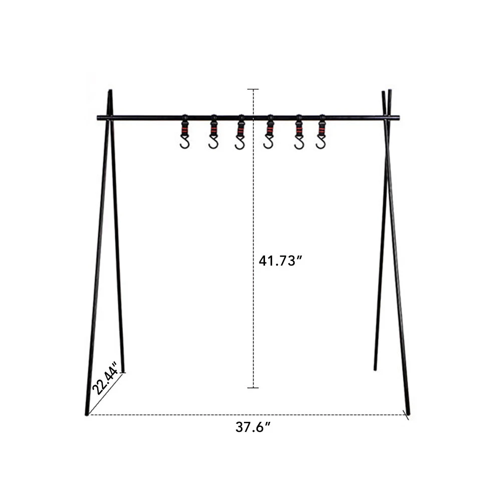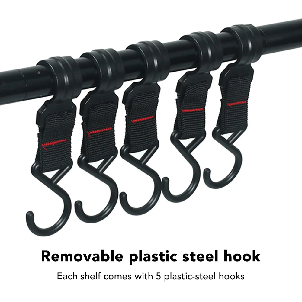 Package Included��o1 x Camping hanging rack, 1 x black bag, Movable plastic steel hooks(5pcs for small size,6pcs for large size)